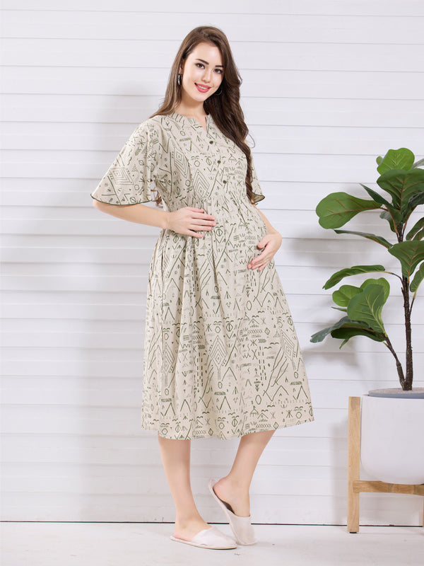 Indulge in comfort and style with the Arela Cream Printed Maternity Nightdress. Crafted from a breathable and soft fabric, this versatile nightdress guarantees a comfortable sleep for expecting mothers. Its timeless cream color, accented with a beautiful print, adds a touch of elegance to your summer wardrobe. Perfect for both during and after pregnancy.